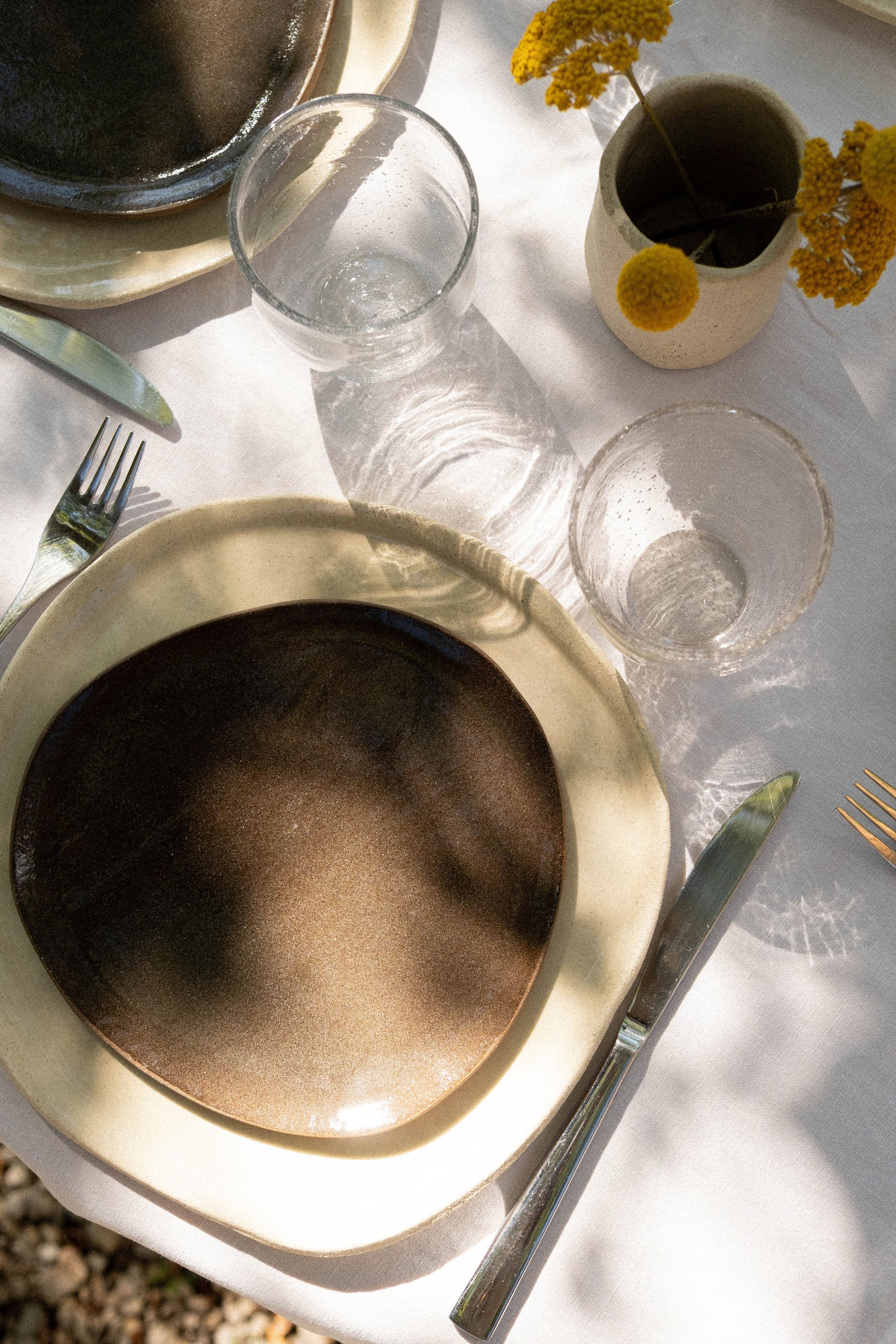 La collection Terraé est un hommage à la terre brute, à son grain, ses nuances douces et naturelles. Façonnées à la main avec soin, les pièces qui composent cette collection visent à amener de singularité dans les objets du quotidien. Ceux qui nous accompagnent pour les petits moments précieux : pour se nourrir, cuisiner, partager, échanger, convier, créer, et tellement d'autres choses encore ...
